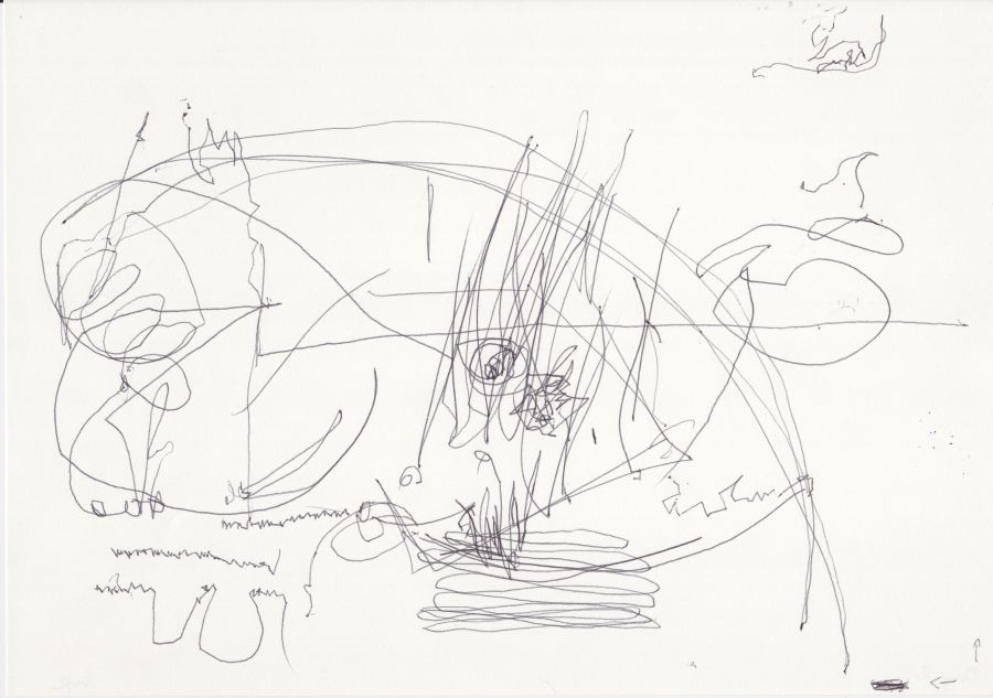 Note about the drawing practice: Since two years I am part of “ phréatiques”a Julien Bruneau’s project, “that explores intersections between dance, drawing and verbal thinking.” This project introduced me to drawing. In “Phréatiques”, we draw with black ballpen or " mine de plomb". The drawings can be individual or collective,they are based on perception: vision, touch, earing, kinaesthetic sense and imagination. Words are sometimes involves in the process of drawing and can become a trace as well, integrated in the whole picture.